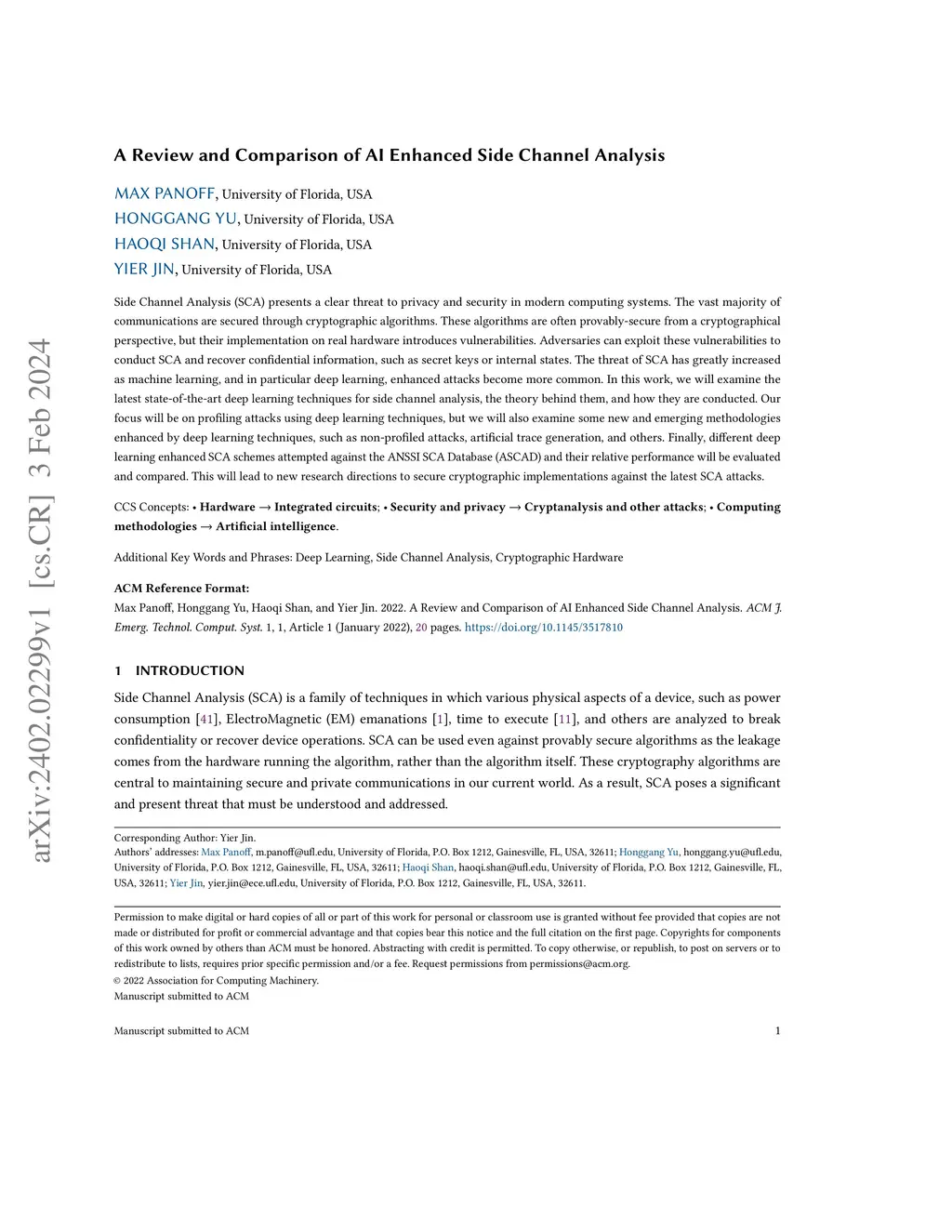A Review and Comparison of AI Enhanced Side Channel Analysis
