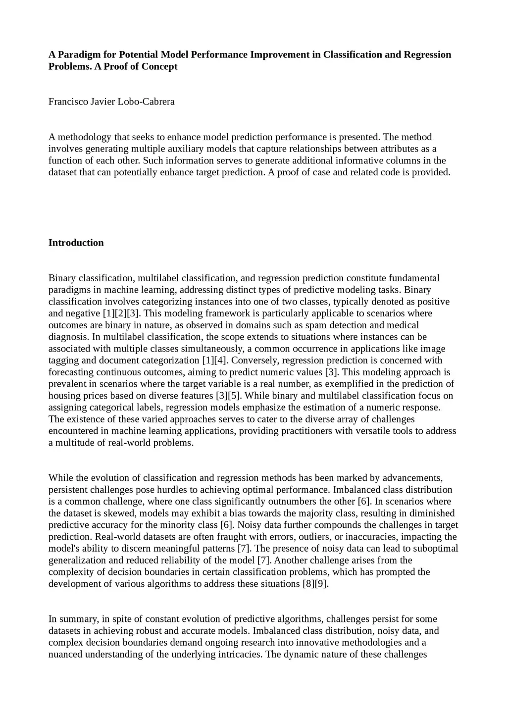 A methodology that seeks to enhance model prediction performance is presented. The method involves generating multiple auxiliary models that capture relationships between attributes as a function of each other. Such information serves to generate additional informative columns in the dataset that can potentially enhance target prediction. A proof of case and related code is provided.