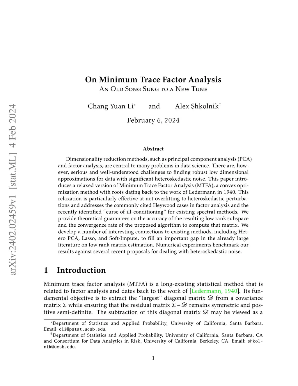 On Minimum Trace Factor Analysis -- An Old Song Sung to a New Tune