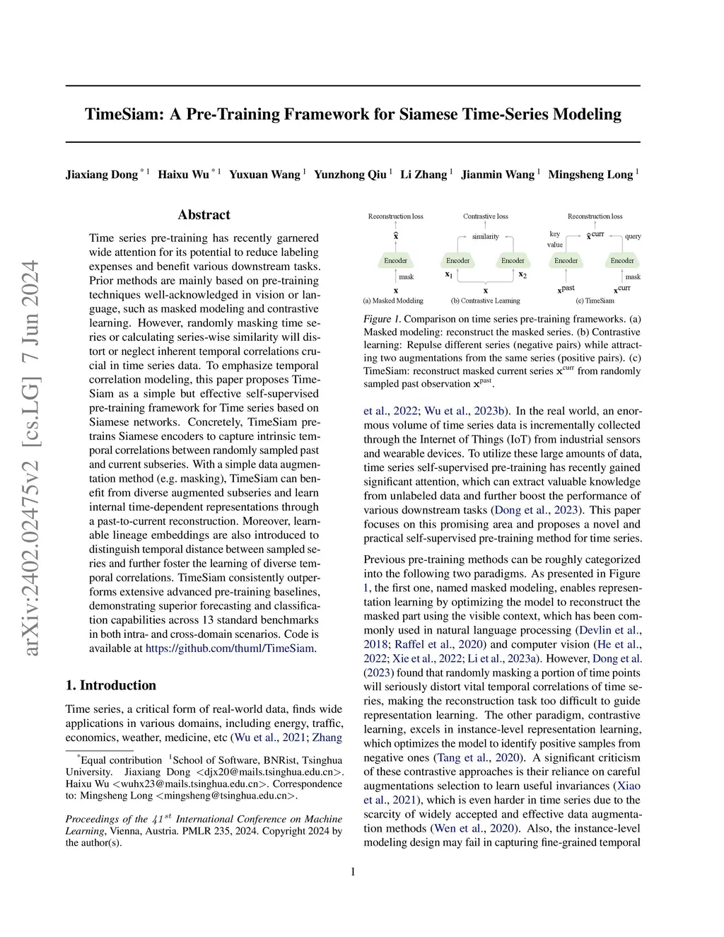 TimeSiam: A Pre-Training Framework for Siamese Time-Series Modeling