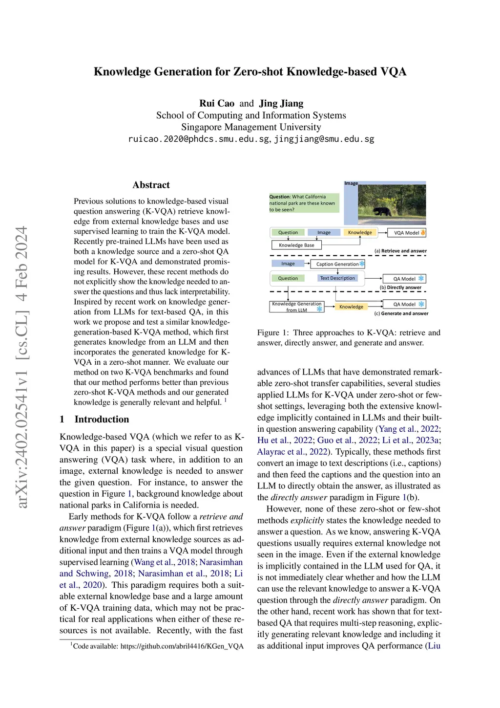 Knowledge Generation for Zero-shot Knowledge-based VQA
