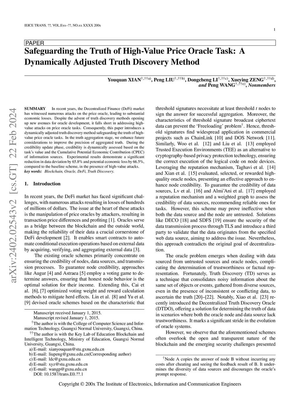 In recent years, the Decentralized Finance (DeFi) market has witnessed numerous attacks on the price oracle, leading to substantial economic losses. Despite the advent of truth discovery methods opening up new avenues for oracle development, it falls short in addressing high-value attacks on price oracle tasks. Consequently, this paper introduces a dynamically adjusted truth discovery method safeguarding the truth of high-value price oracle tasks. In the truth aggregation stage, we enhance future considerations to improve the precision of aggregated truth. During the credibility update phase, credibility is dynamically assessed based on the task's value and the Cumulative Potential Economic Contribution (CPEC) of information sources. Experimental results demonstrate a significant reduction in data deviation by 65.8\% and potential economic loss by 66.5\%, compared to the baseline scheme, in the presence of high-value attacks.