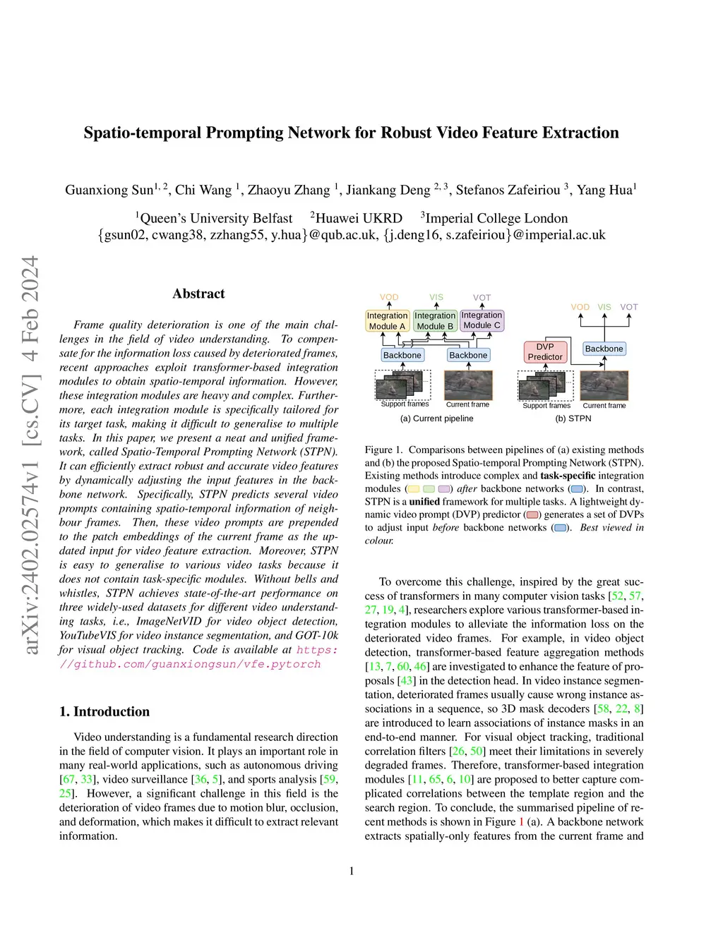 Spatio-temporal Prompting Network for Robust Video Feature Extraction