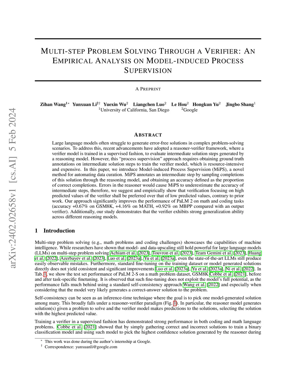 Process supervision, using a trained verifier to evaluate the intermediate steps generated by reasoner, has demonstrated significant improvements in multi-step problem solving. In this paper, to avoid expensive human annotation effort on the verifier training data, we introduce Model-induced Process Supervision (MiPS), a novel method for automating data curation. MiPS annotates an intermediate step by sampling completions of this solution through the reasoning model, and obtaining an accuracy defined as the proportion of correct completions. Errors in the reasoner would cause MiPS to underestimate the accuracy of intermediate steps, therefore, we suggest and empirically show that verification focusing on high predicted scores of the verifier shall be preferred over that of low predicted scores, contrary to prior work. Our approach significantly improves the performance of PaLM 2 on math and coding tasks (accuracy +0.67% on GSM8K, +4.16% on MATH, +0.92% on MBPP compared with an output supervision trained verifier). Additionally, our study demonstrates that the verifier exhibits strong generalization ability across different reasoning models.