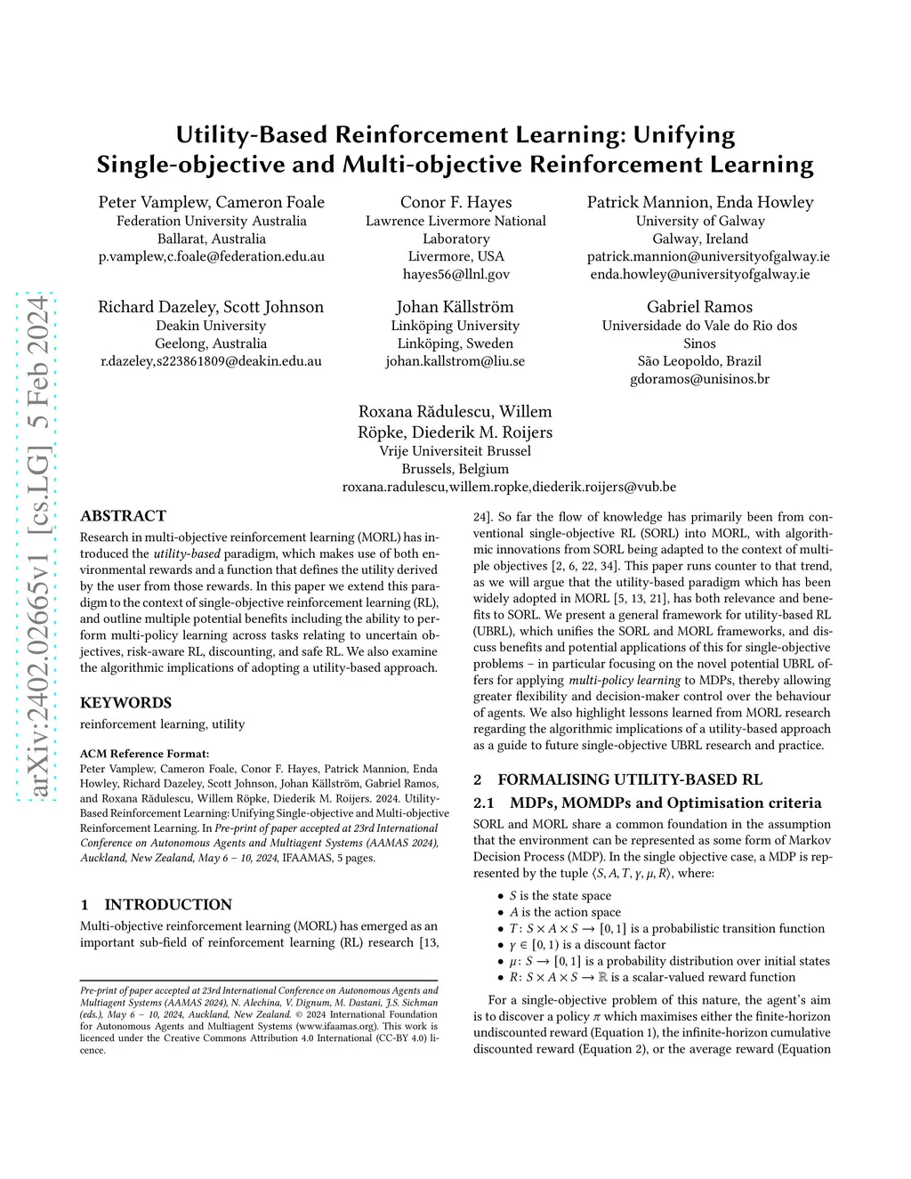Multi-objective Reinforcement Learning