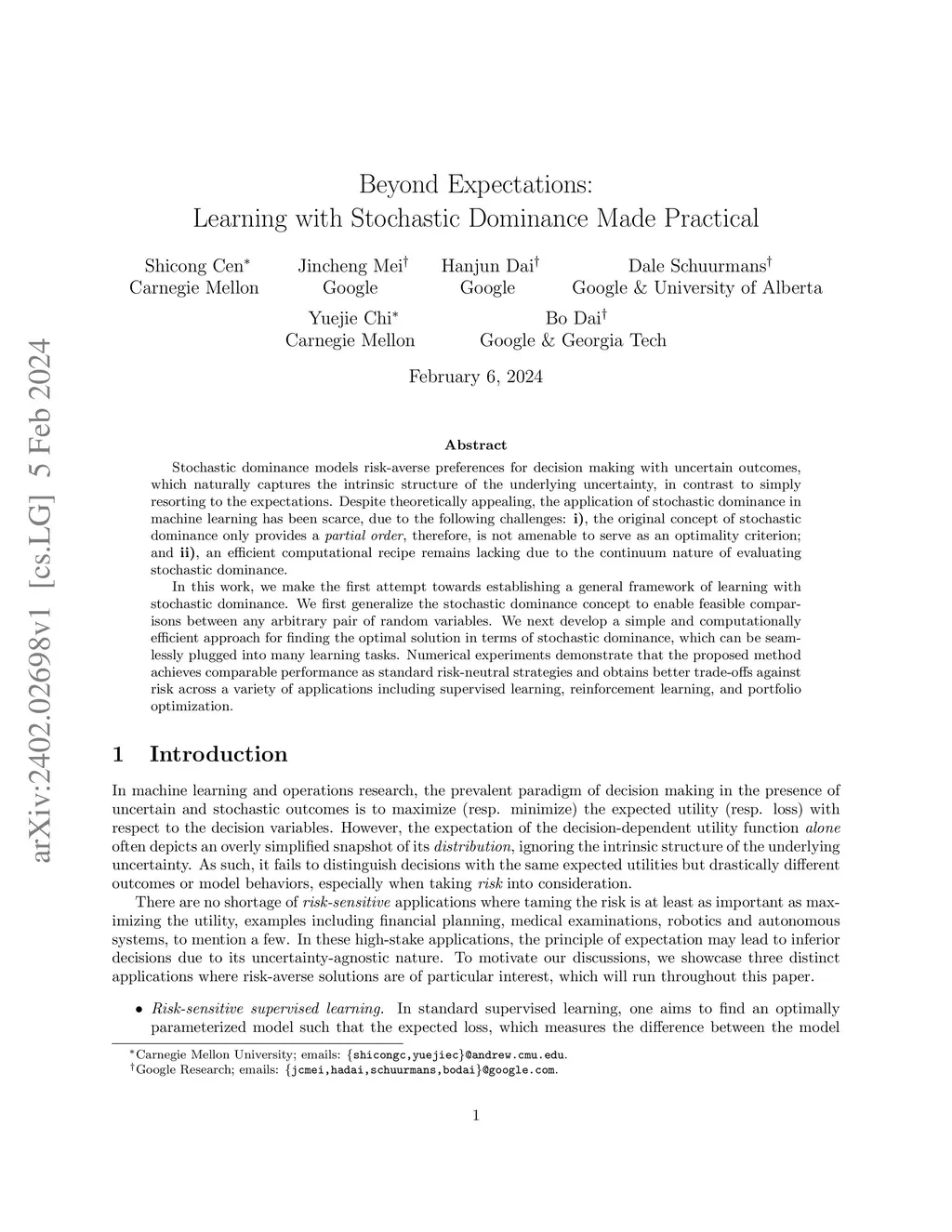 Beyond Expectations: Learning with Stochastic Dominance Made Practical