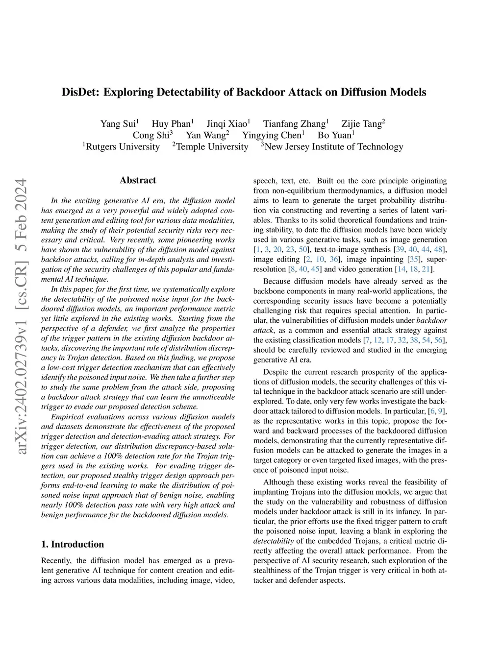 DisDet: Exploring Detectability of Backdoor Attack on Diffusion Models