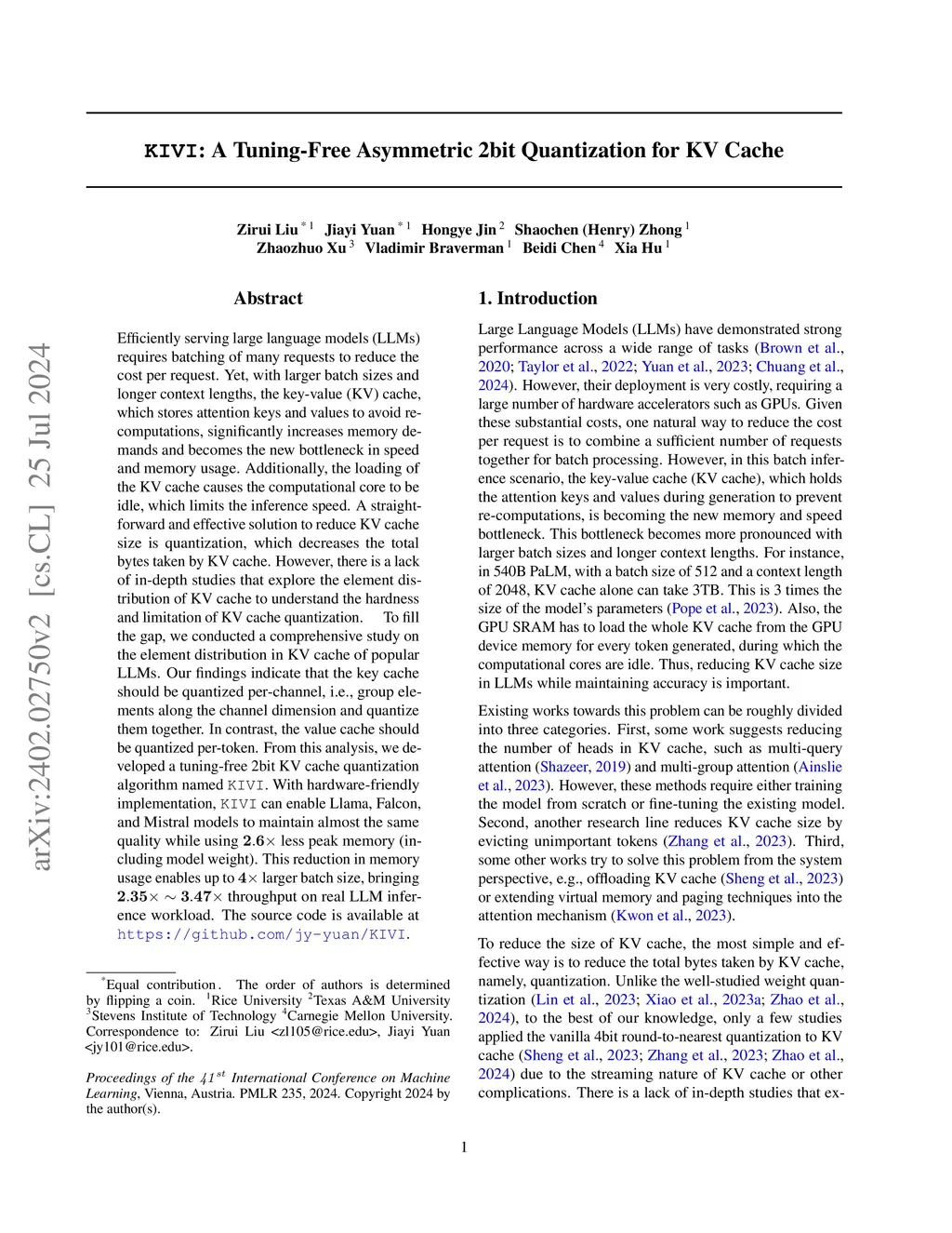 KIVI: A Tuning-Free Asymmetric 2bit Quantization for KV Cache