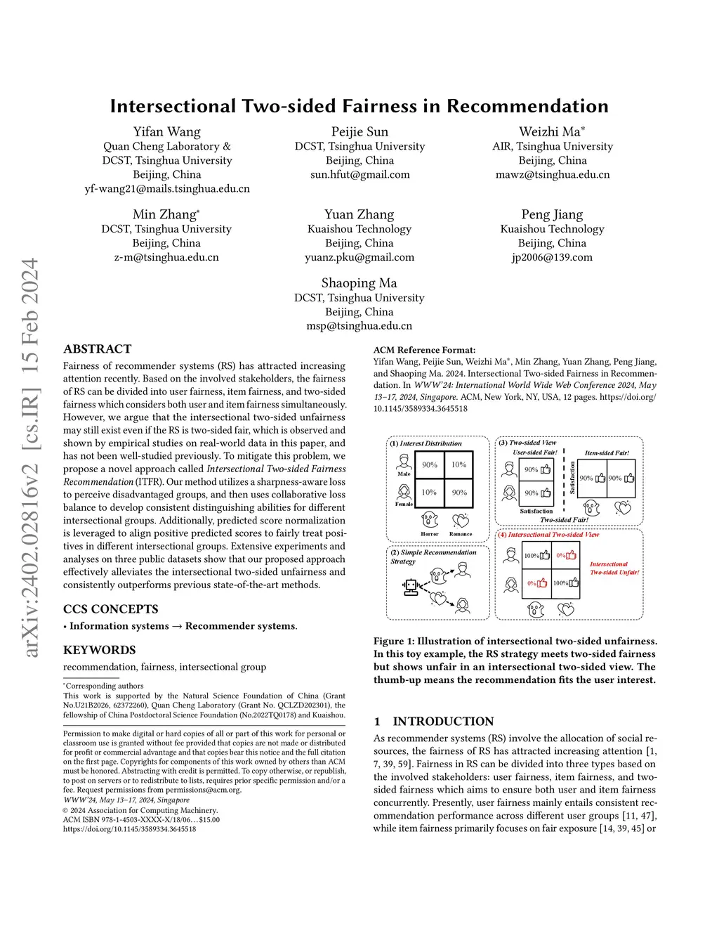 Fairness of recommender systems (RS) has attracted increasing attention recently. Based on the involved stakeholders, the fairness of RS can be divided into user fairness, item fairness, and two-sided fairness which considers both user and item fairness simultaneously. However, we argue that the intersectional two-sided unfairness may still exist even if the RS is two-sided fair, which is observed and shown by empirical studies on real-world data in this paper, and has not been well-studied previously. To mitigate this problem, we propose a novel approach called Intersectional Two-sided Fairness Recommendation (ITFR). Our method utilizes a sharpness-aware loss to perceive disadvantaged groups, and then uses collaborative loss balance to develop consistent distinguishing abilities for different intersectional groups. Additionally, predicted score normalization is leveraged to align positive predicted scores to fairly treat positives in different intersectional groups. Extensive experiments and analyses on three public datasets show that our proposed approach effectively alleviates the intersectional two-sided unfairness and consistently outperforms previous state-of-the-art methods.