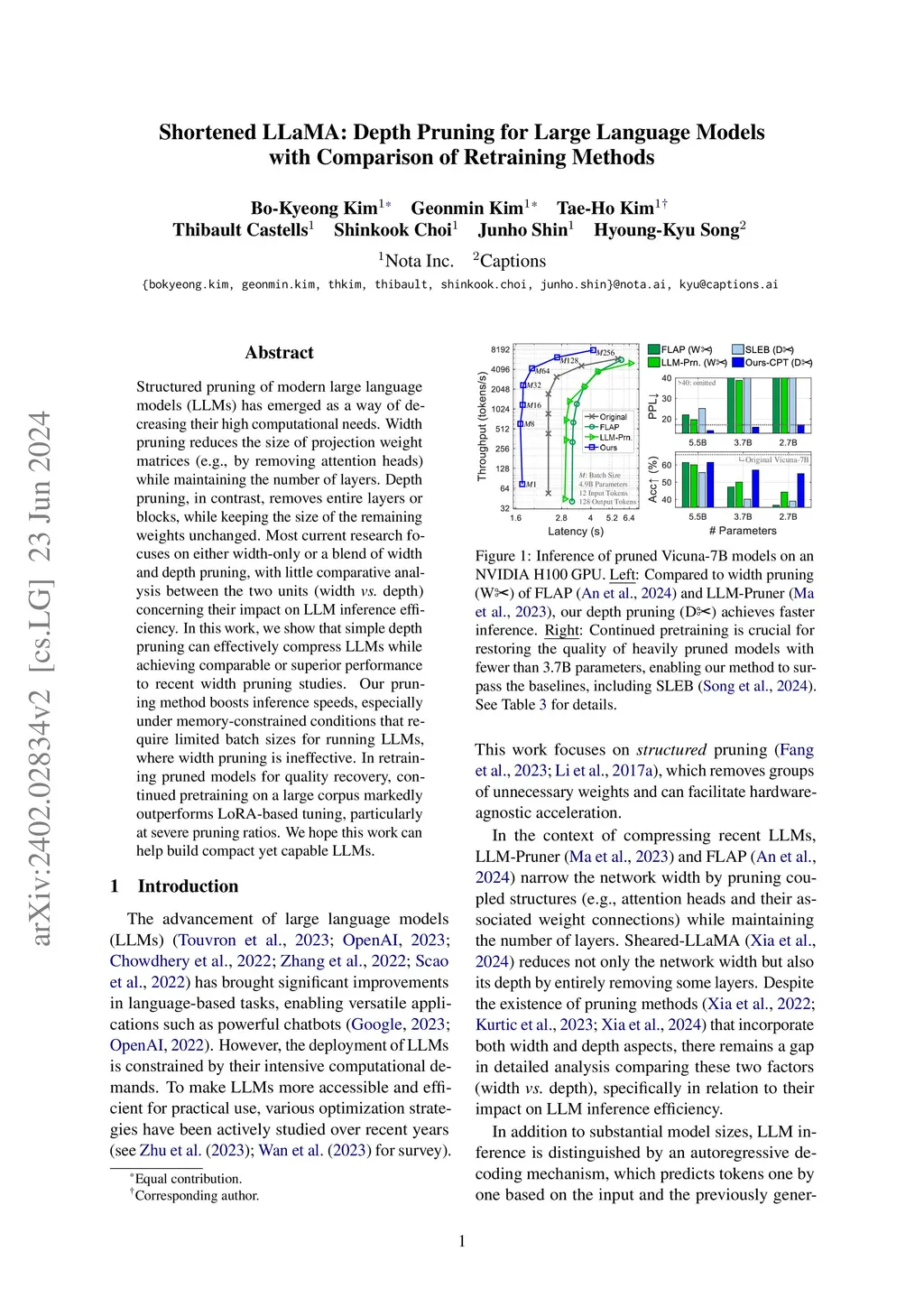 Shortened LLaMA: Depth Pruning for Large Language Models with Comparison