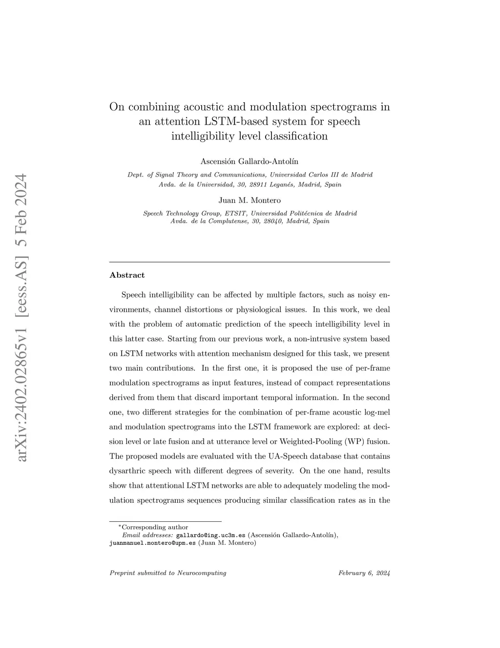 Speech intelligibility can be affected by multiple factors, such as noisy environments, channel distortions or physiological issues. In this work, we deal with the problem of automatic prediction of the speech intelligibility level in this latter case. Starting from our previous work, a non-intrusive system based on LSTM networks with attention mechanism designed for this task, we present two main contributions. In the first one, it is proposed the use of per-frame modulation spectrograms as input features, instead of compact representations derived from them that discard important temporal information. In the second one, two different strategies for the combination of per-frame acoustic log-mel and modulation spectrograms into the LSTM framework are explored: at decision level or late fusion and at utterance level or Weighted-Pooling (WP) fusion. The proposed models are evaluated with the UA-Speech database that contains dysarthric speech with different degrees of severity. On the one hand, results show that attentional LSTM networks are able to adequately modeling the modulation spectrograms sequences producing similar classification rates as in the case of log-mel spectrograms. On the other hand, both combination strategies, late and WP fusion, outperform the single-feature systems, suggesting that per-frame log-mel and modulation spectrograms carry complementary information for the task of speech intelligibility prediction, than can be effectively exploited by the LSTM-based architectures, being the system with the WP fusion strategy and Attention-Pooling the one that achieves best results.