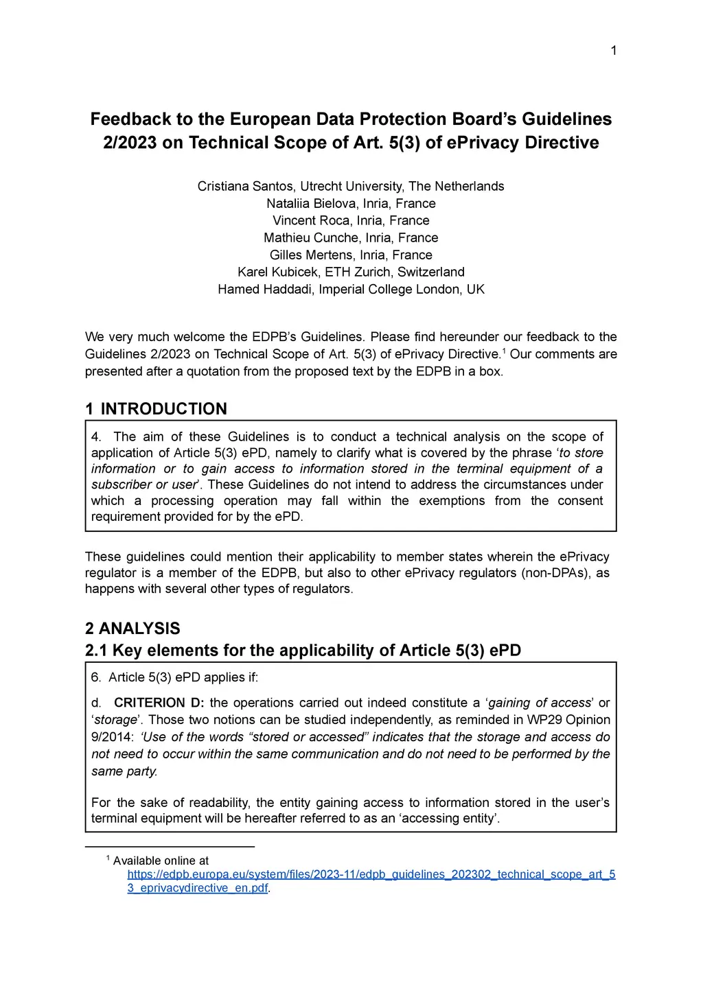 We very much welcome the EDPB's Guidelines. Please find hereunder our feedback to the Guidelines 2/2023 on Technical Scope of Art. 5(3) of ePrivacy Directive. Our comments are presented after a quotation from the proposed text by the EDPB in a box.