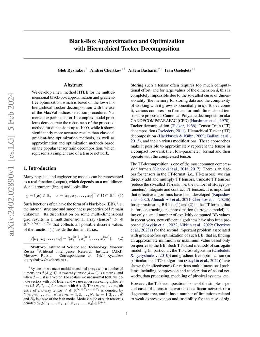Black-Box Approximation and Optimization with Hierarchical Tucker