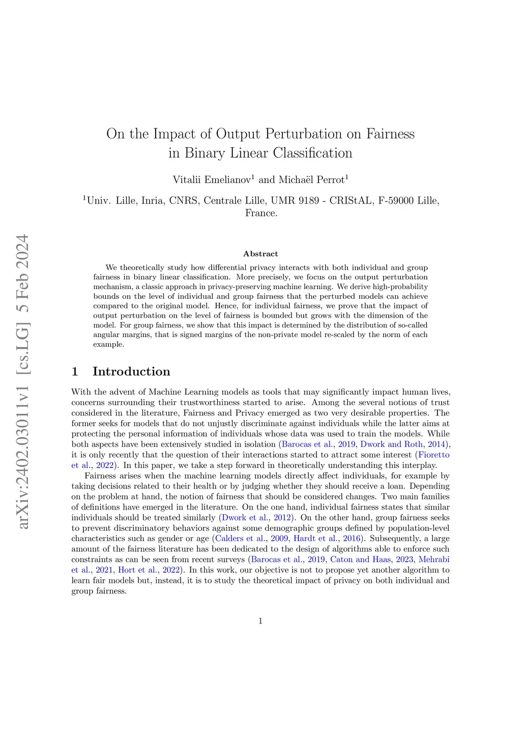 On the Impact of Output Perturbation on Fairness in Binary Linear