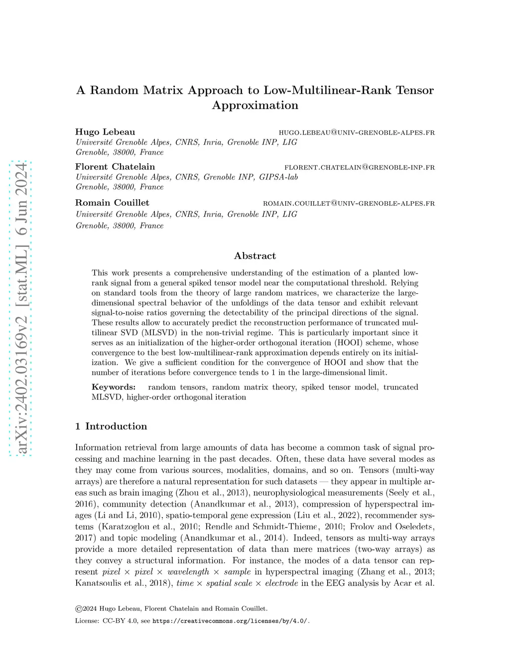 A Random Matrix Approach to Low-Multilinear-Rank Tensor Approximation
