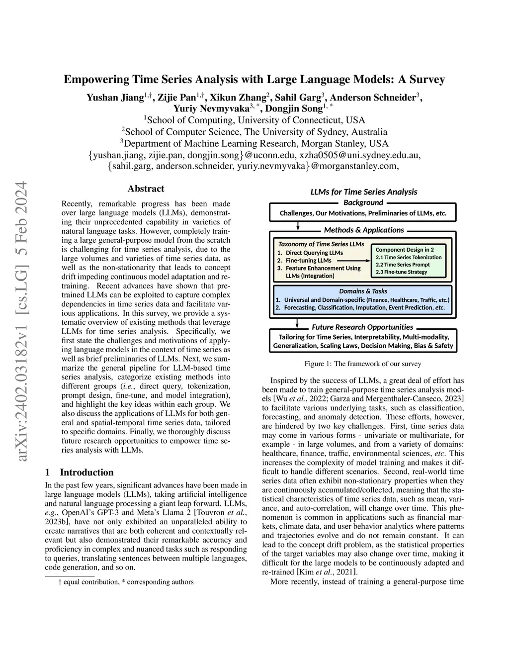 Recently, remarkable progress has been made over large language models (LLMs), demonstrating their unprecedented capability in varieties of natural language tasks. However, completely training a large general-purpose model from the scratch is challenging for time series analysis, due to the large volumes and varieties of time series data, as well as the non-stationarity that leads to concept drift impeding continuous model adaptation and re-training. Recent advances have shown that pre-trained LLMs can be exploited to capture complex dependencies in time series data and facilitate various applications. In this survey, we provide a systematic overview of existing methods that leverage LLMs for time series analysis. Specifically, we first state the challenges and motivations of applying language models in the context of time series as well as brief preliminaries of LLMs. Next, we summarize the general pipeline for LLM-based time series analysis, categorize existing methods into different groups (i.e., direct query, tokenization, prompt design, fine-tune, and model integration), and highlight the key ideas within each group. We also discuss the applications of LLMs for both general and spatial-temporal time series data, tailored to specific domains. Finally, we thoroughly discuss future research opportunities to empower time series analysis with LLMs.