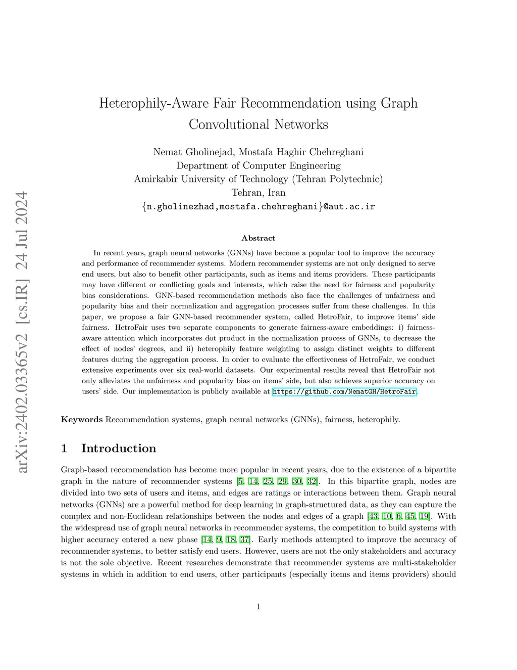 Heterophily-Aware Fair Recommendation using Graph Convolutional Networks