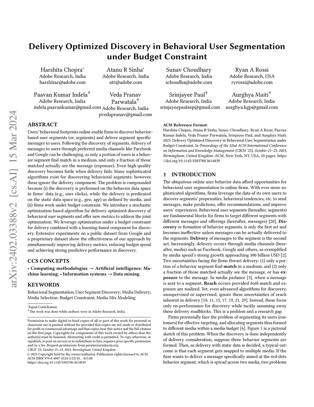 Delivery Optimized Discovery in Behavioral User Segmentation under