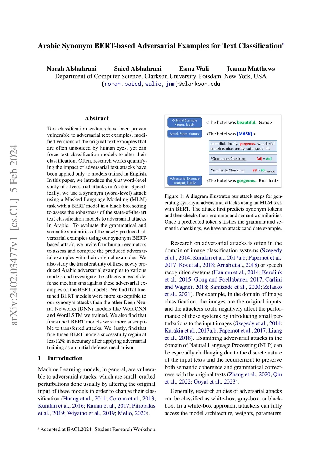 Arabic Synonym BERT-based Adversarial Examples for Text Classification