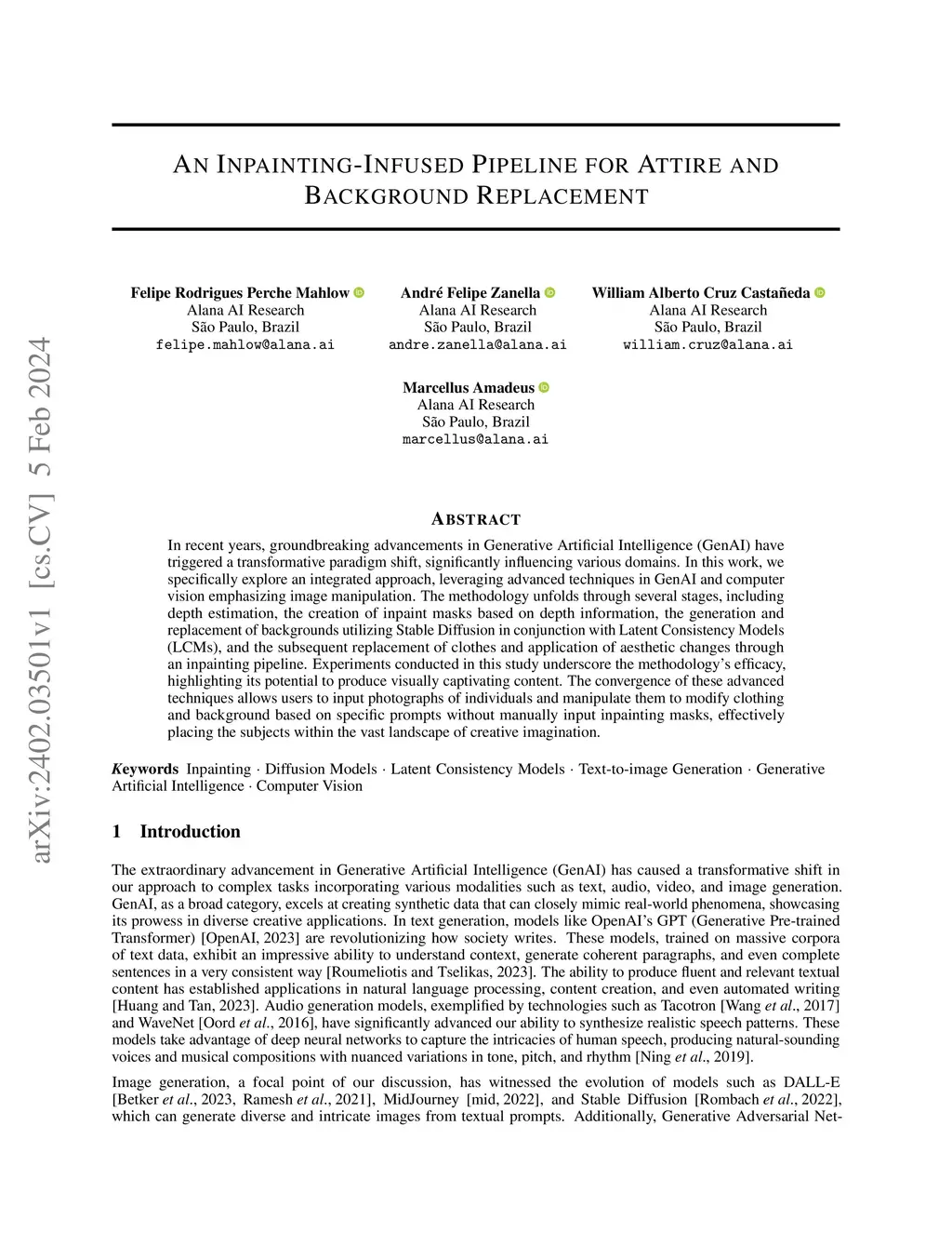 In recent years, groundbreaking advancements in Generative Artificial Intelligence (GenAI) have triggered a transformative paradigm shift, significantly influencing various domains. In this work, we specifically explore an integrated approach, leveraging advanced techniques in GenAI and computer vision emphasizing image manipulation. The methodology unfolds through several stages, including depth estimation, the creation of inpaint masks based on depth information, the generation and replacement of backgrounds utilizing Stable Diffusion in conjunction with Latent Consistency Models (LCMs), and the subsequent replacement of clothes and application of aesthetic changes through an inpainting pipeline. Experiments conducted in this study underscore the methodology's efficacy, highlighting its potential to produce visually captivating content. The convergence of these advanced techniques allows users to input photographs of individuals and manipulate them to modify clothing and background based on specific prompts without manually input inpainting masks, effectively placing the subjects within the vast landscape of creative imagination.