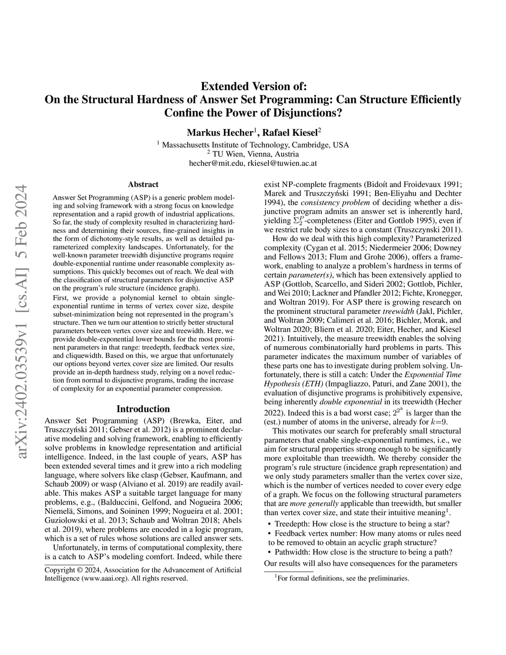 Extended Version of: On the Structural Hardness of Answer Set