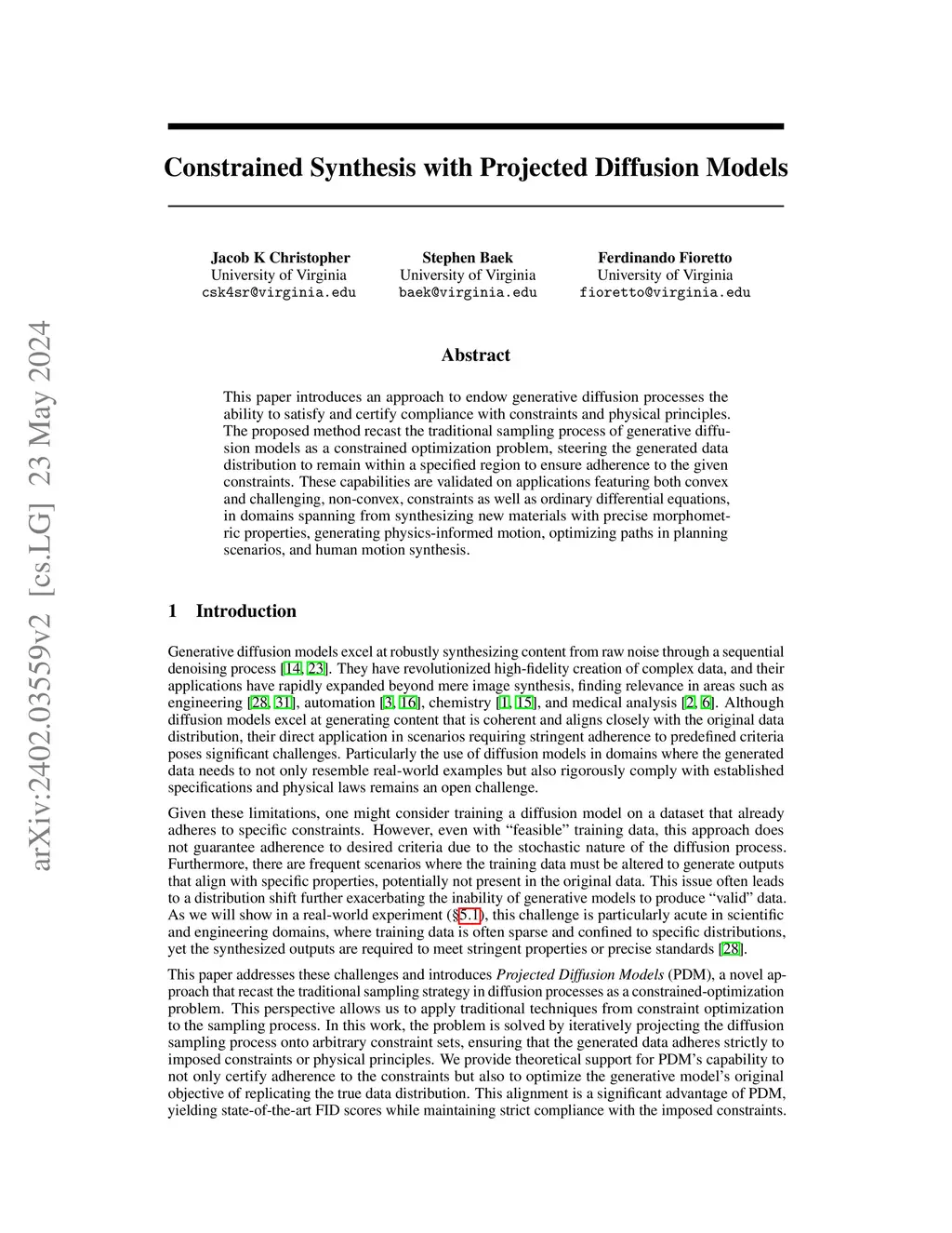 Constrained Synthesis with Projected Diffusion Models