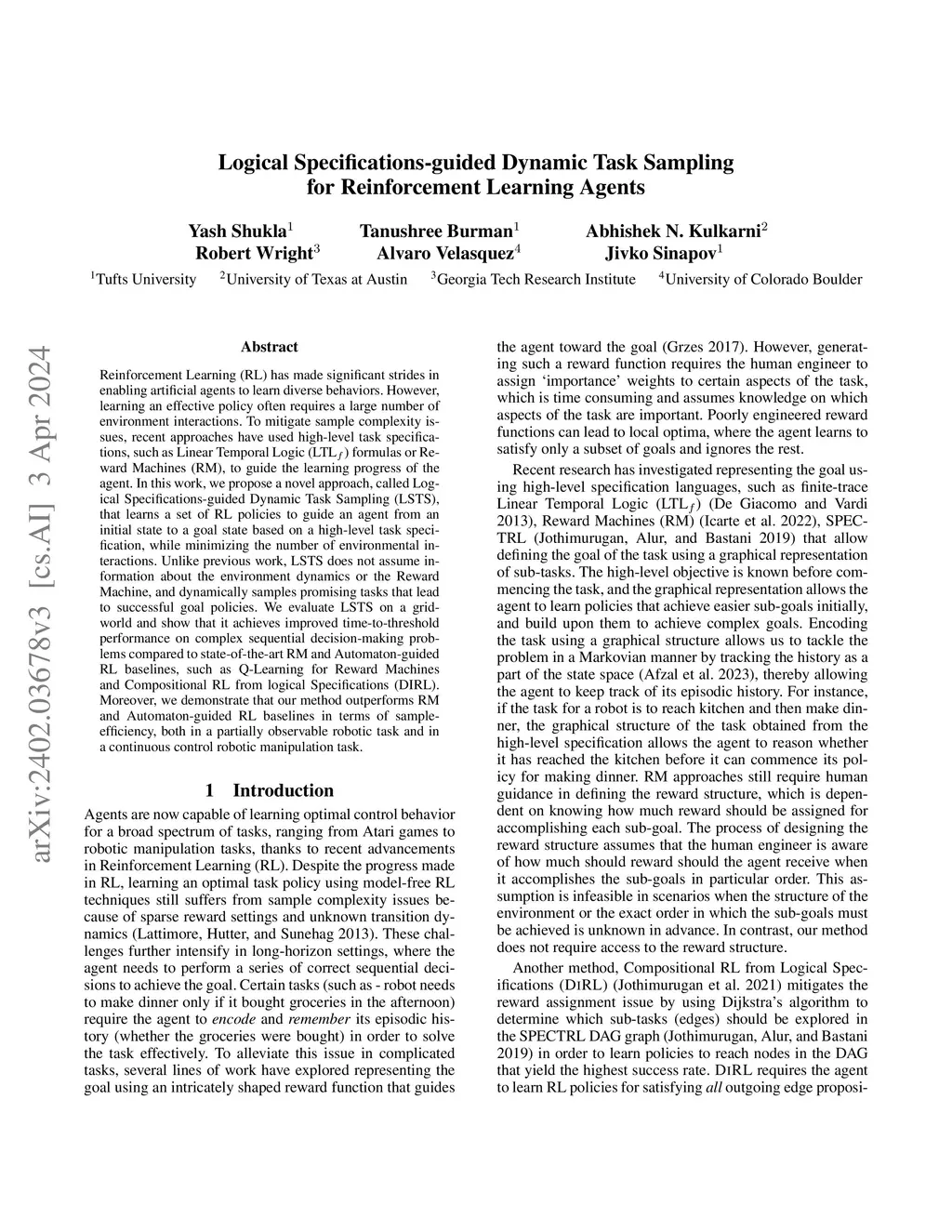 Logical Specifications-guided Dynamic Task Sampling for Reinforcement