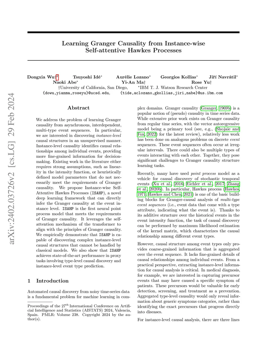 Learning Granger Causality from Instance-wise Self-attentive Hawkes