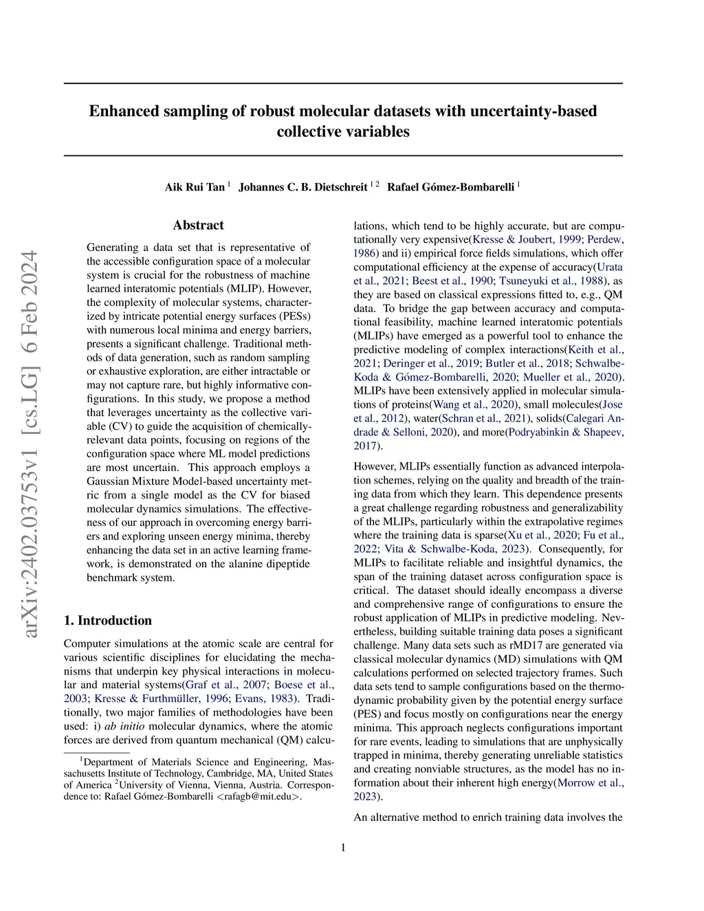 Generating a data set that is representative of the accessible configuration space of a molecular system is crucial for the robustness of machine learned interatomic potentials (MLIP). However, the complexity of molecular systems, characterized by intricate potential energy surfaces (PESs) with numerous local minima and energy barriers, presents a significant challenge. Traditional methods of data generation, such as random sampling or exhaustive exploration, are either intractable or may not capture rare, but highly informative configurations. In this study, we propose a method that leverages uncertainty as the collective variable (CV) to guide the acquisition of chemically-relevant data points, focusing on regions of the configuration space where ML model predictions are most uncertain. This approach employs a Gaussian Mixture Model-based uncertainty metric from a single model as the CV for biased molecular dynamics simulations. The effectiveness of our approach in overcoming energy barriers and exploring unseen energy minima, thereby enhancing the data set in an active learning framework, is demonstrated on the alanine dipeptide benchmark system.