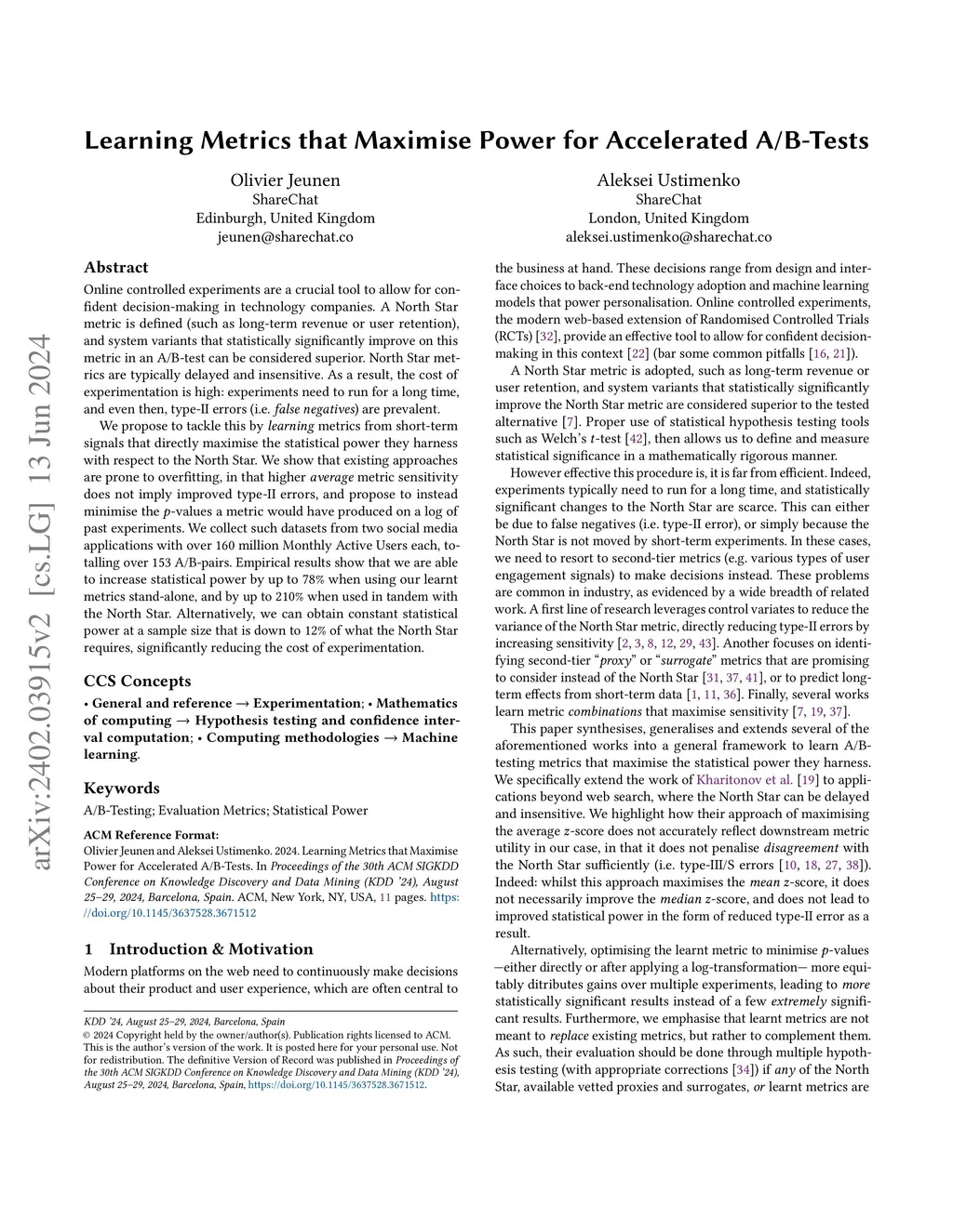 Learning Metrics that Maximise Power for Accelerated A/B-Tests