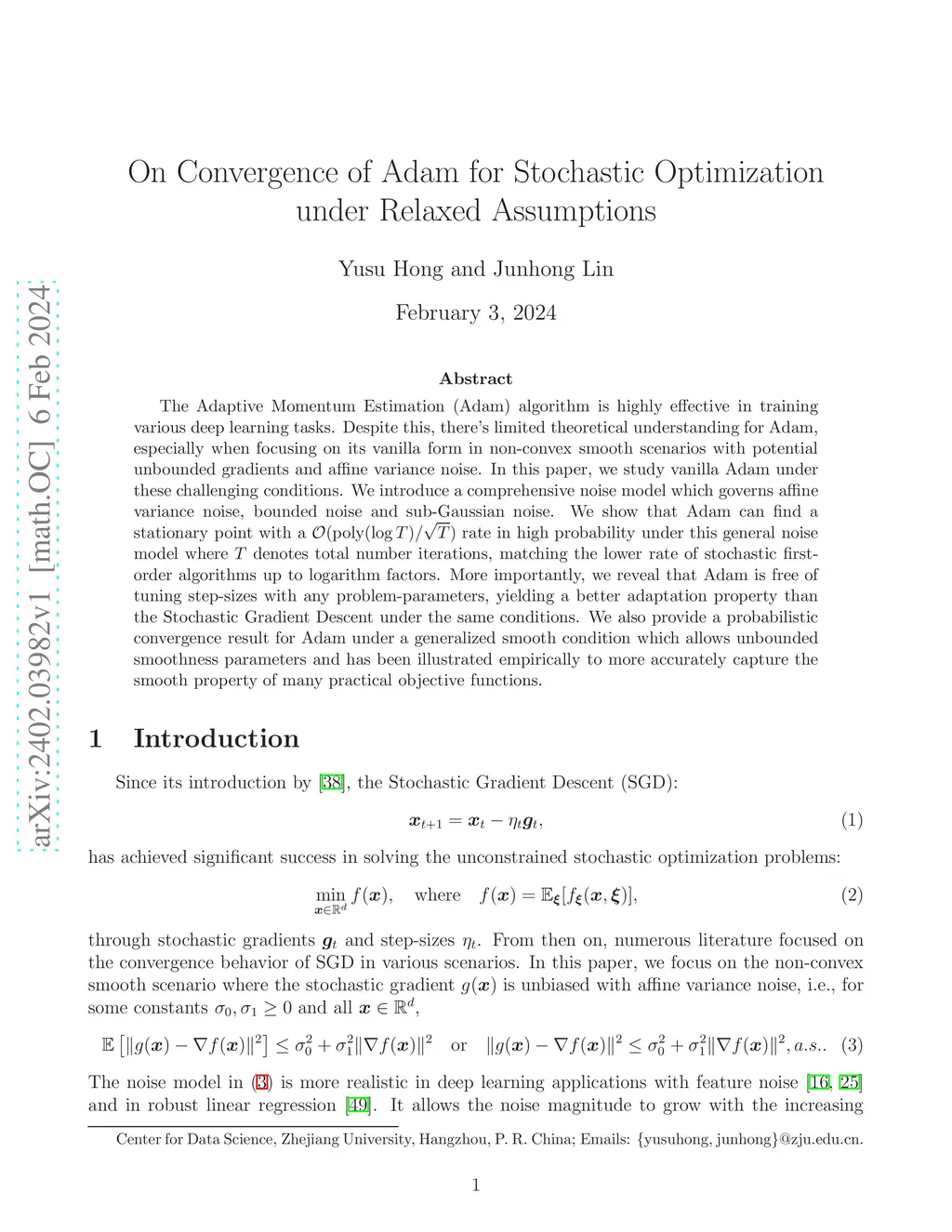 On Convergence of Adam for Stochastic Optimization under Relaxed Assumptions
