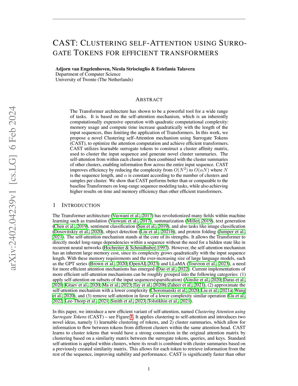 CAST: Clustering Self-Attention using Surrogate Tokens for Efficient