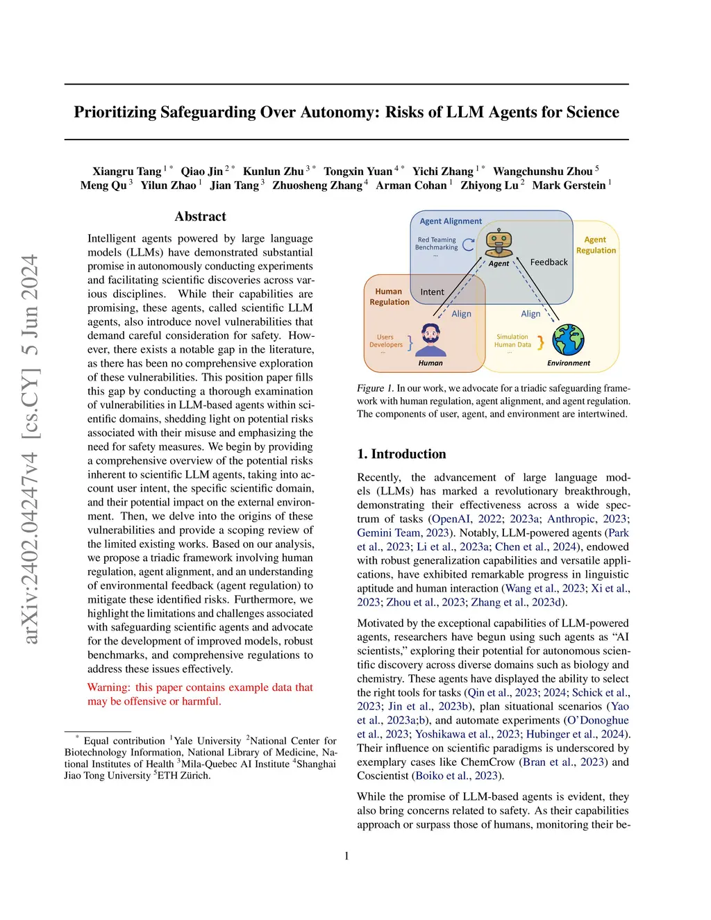 Prioritizing Safeguarding Over Autonomy: Risks of LLM Agents for Science