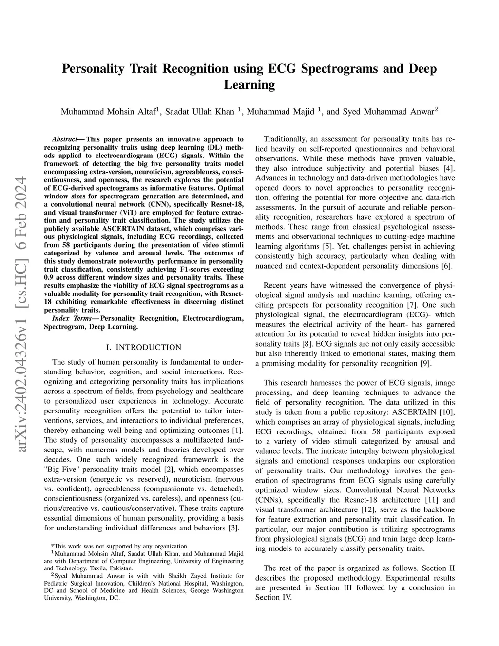 Personality Trait Recognition using ECG Spectrograms and Deep Learning