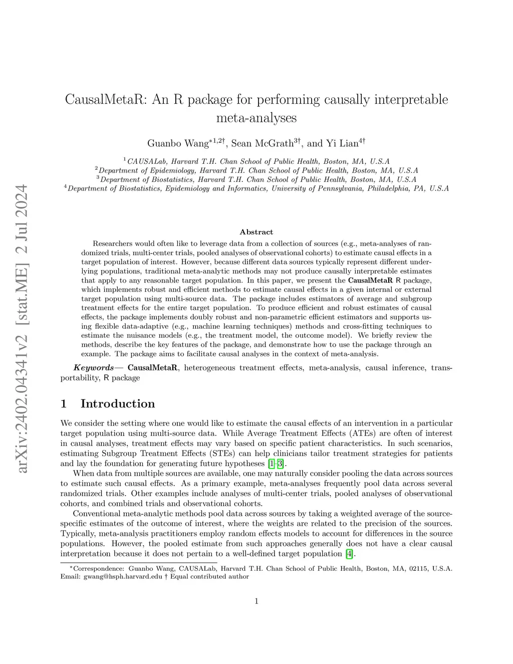 Researchers would often like to leverage data from a collection of sources (e.g., primary studies in a meta-analysis) to estimate causal effects in a target population of interest. However, traditional meta-analytic methods do not produce causally interpretable estimates for a well-defined target population. In this paper, we present the CausalMetaR R package, which implements efficient and robust methods to estimate causal effects in a given internal or external target population using multi-source data. The package includes estimators of average and subgroup treatment effects for the entire target population. To produce efficient and robust estimates of causal effects, the package implements doubly robust and non-parametric efficient estimators and supports using flexible data-adaptive (e.g., machine learning techniques) methods and cross-fitting techniques to estimate the nuisance models (e.g., the treatment model, the outcome model). We describe the key features of the package and demonstrate how to use the package through an example.