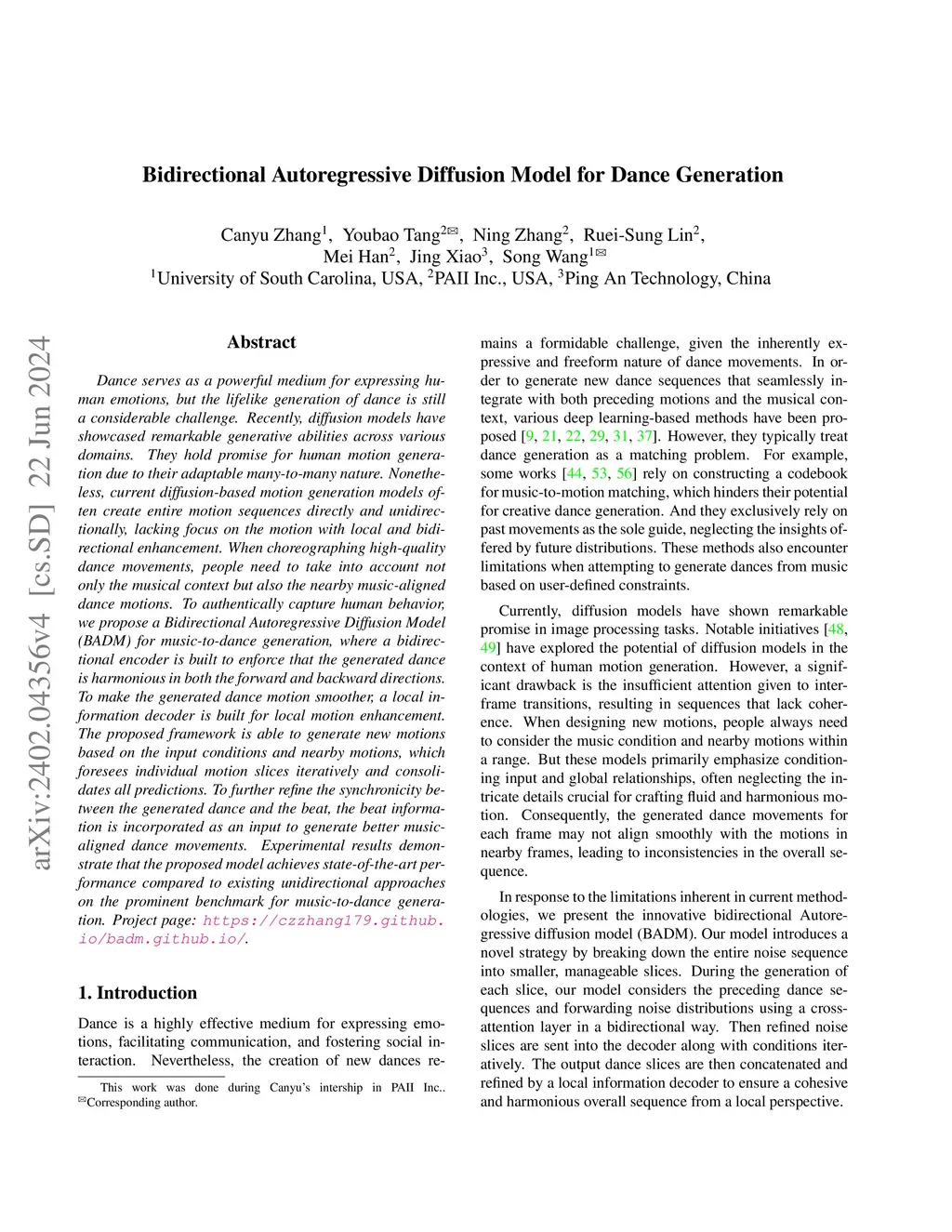 Bidirectional Autoregressive Diffusion Model for Dance Generation