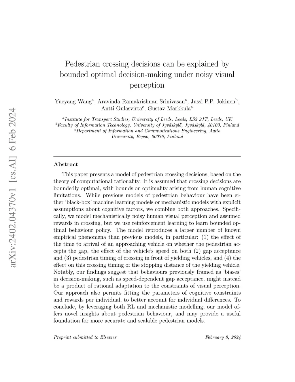 Pedestrian crossing decisions can be explained by bounded optimal