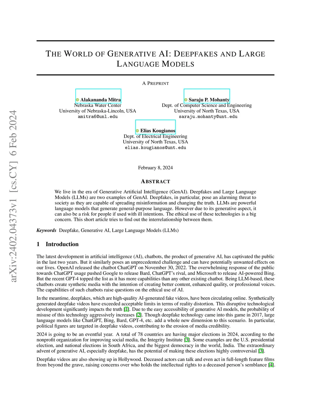 We live in the era of Generative Artificial Intelligence (GenAI). Deepfakes and Large Language Models (LLMs) are two examples of GenAI. Deepfakes, in particular, pose an alarming threat to society as they are capable of spreading misinformation and changing the truth. LLMs are powerful language models that generate general-purpose language. However due to its generative aspect, it can also be a risk for people if used with ill intentions. The ethical use of these technologies is a big concern. This short article tries to find out the interrelationship between them.