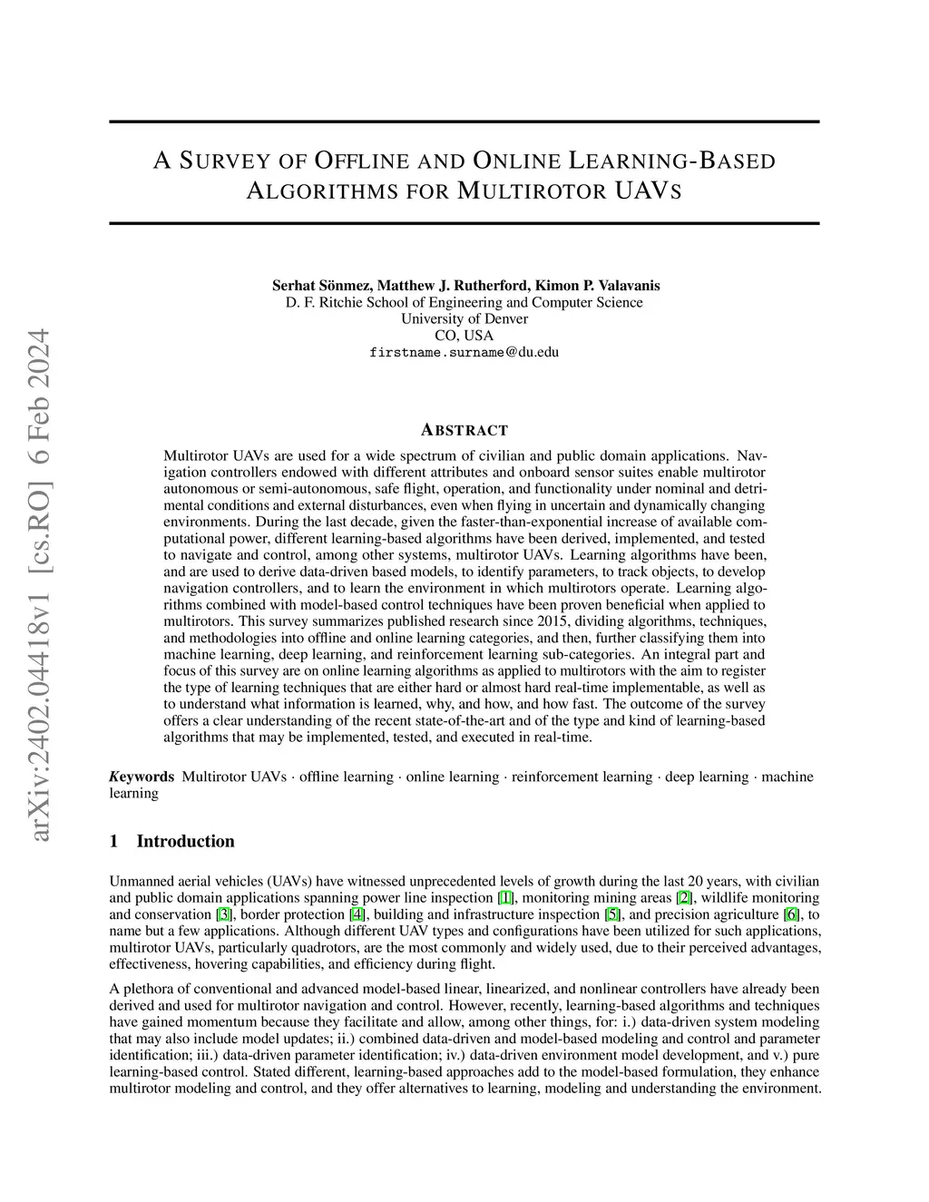A Survey of Offline and Online Learning-Based Algorithms for Multirotor