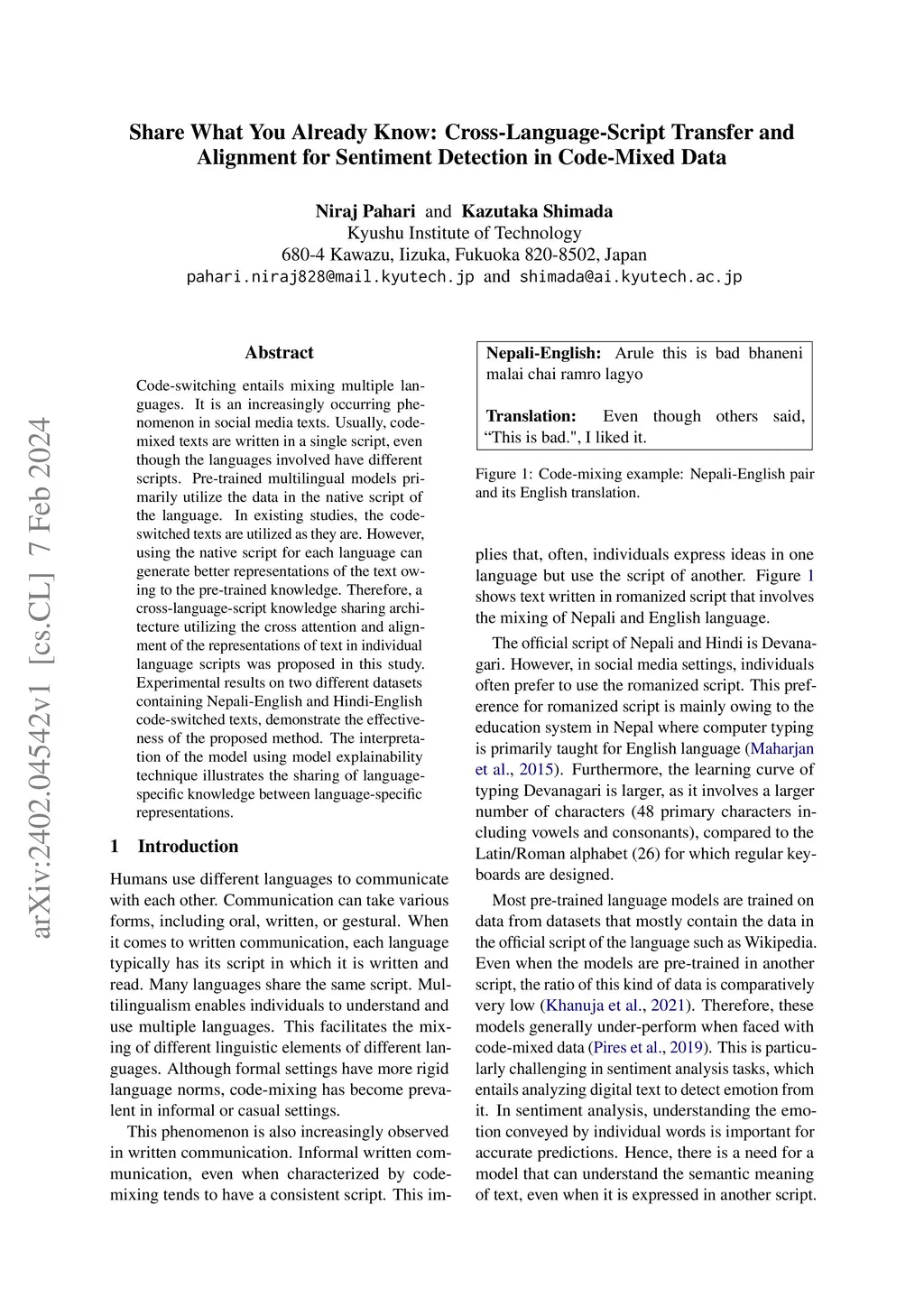 Alignment for Sentiment Detection in Code-Mixed Data