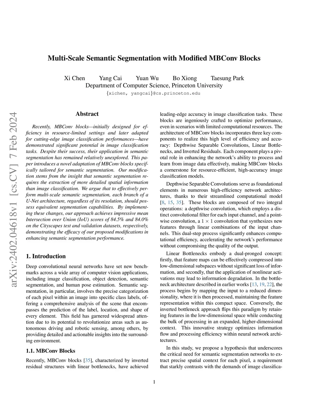 Multi-Scale Semantic Segmentation with Modified MBConv Blocks