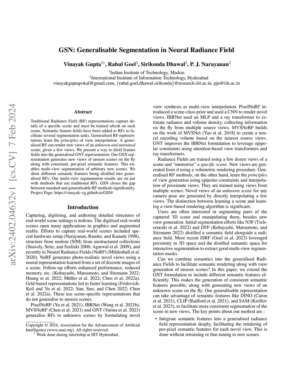 GSN: Generalisable Segmentation in Neural Radiance Field