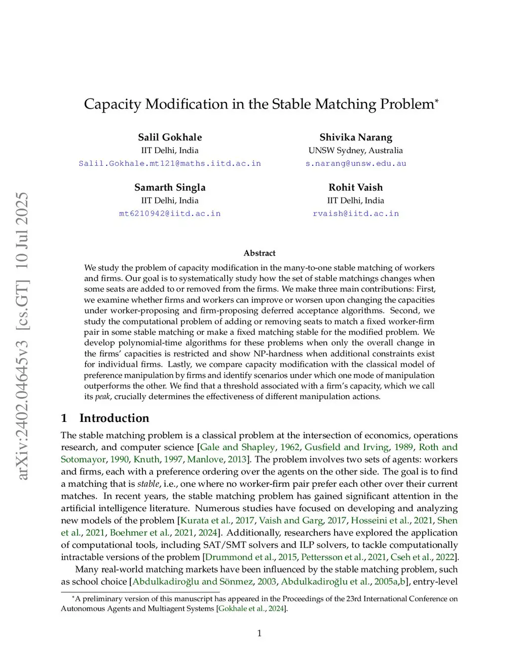 Capacity Modification in the Stable Matching Problem