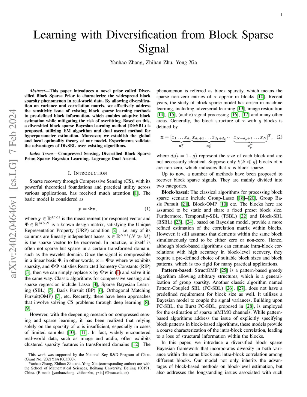 This paper introduces a novel prior called Diversified Block Sparse Prior to characterize the widespread block sparsity phenomenon in real-world data. By allowing diversification on variance and correlation matrix, we effectively address the sensitivity issue of existing block sparse learning methods to pre-defined block information, which enables adaptive block estimation while mitigating the risk of overfitting. Based on this, a diversified block sparse Bayesian learning method (DivSBL) is proposed, utilizing EM algorithm and dual ascent method for hyperparameter estimation. Moreover, we establish the global and local optimality theory of our model. Experiments validate the advantages of DivSBL over existing algorithms.