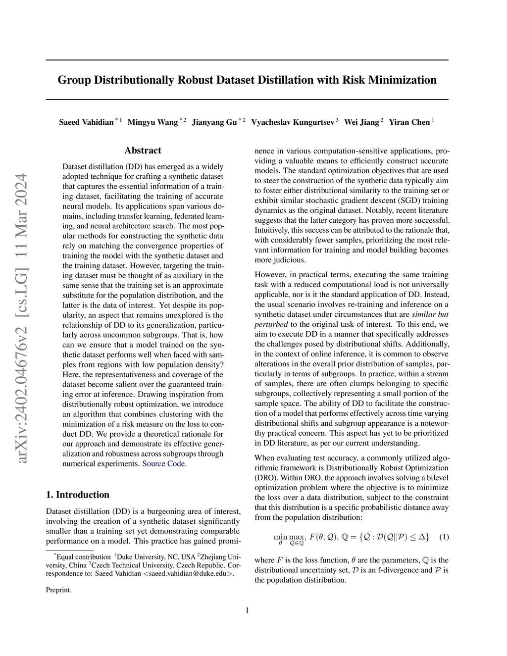 Group Distributionally Robust Dataset Distillation with Risk Minimization