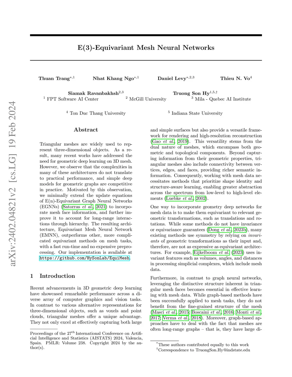 E(3)-Equivariant Mesh Neural Networks