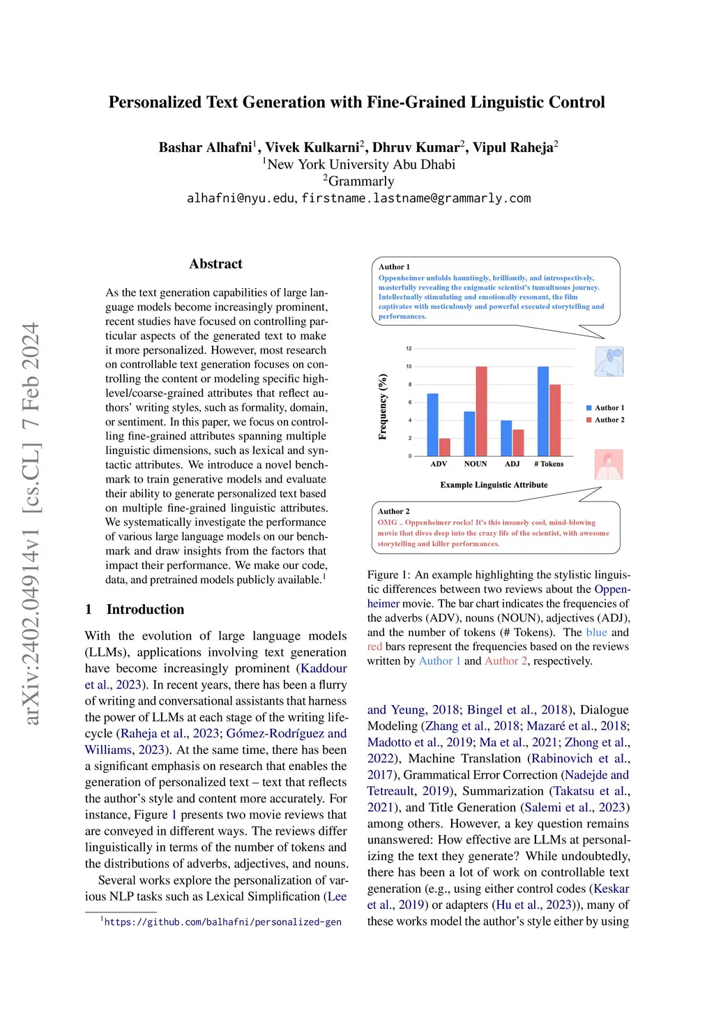 Personalized Text Generation with Fine-Grained Linguistic Control