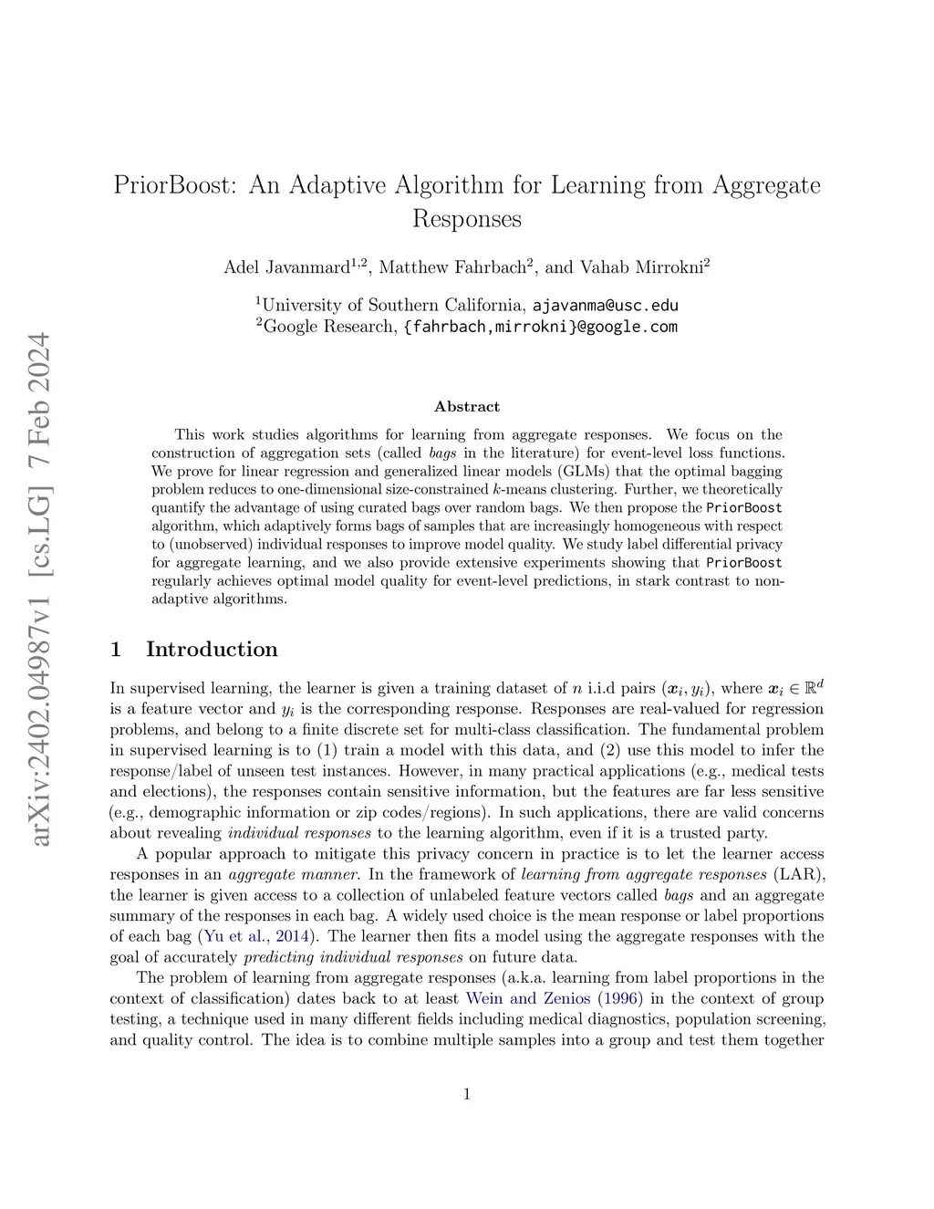 PriorBoost: An Adaptive Algorithm for Learning from Aggregate Responses