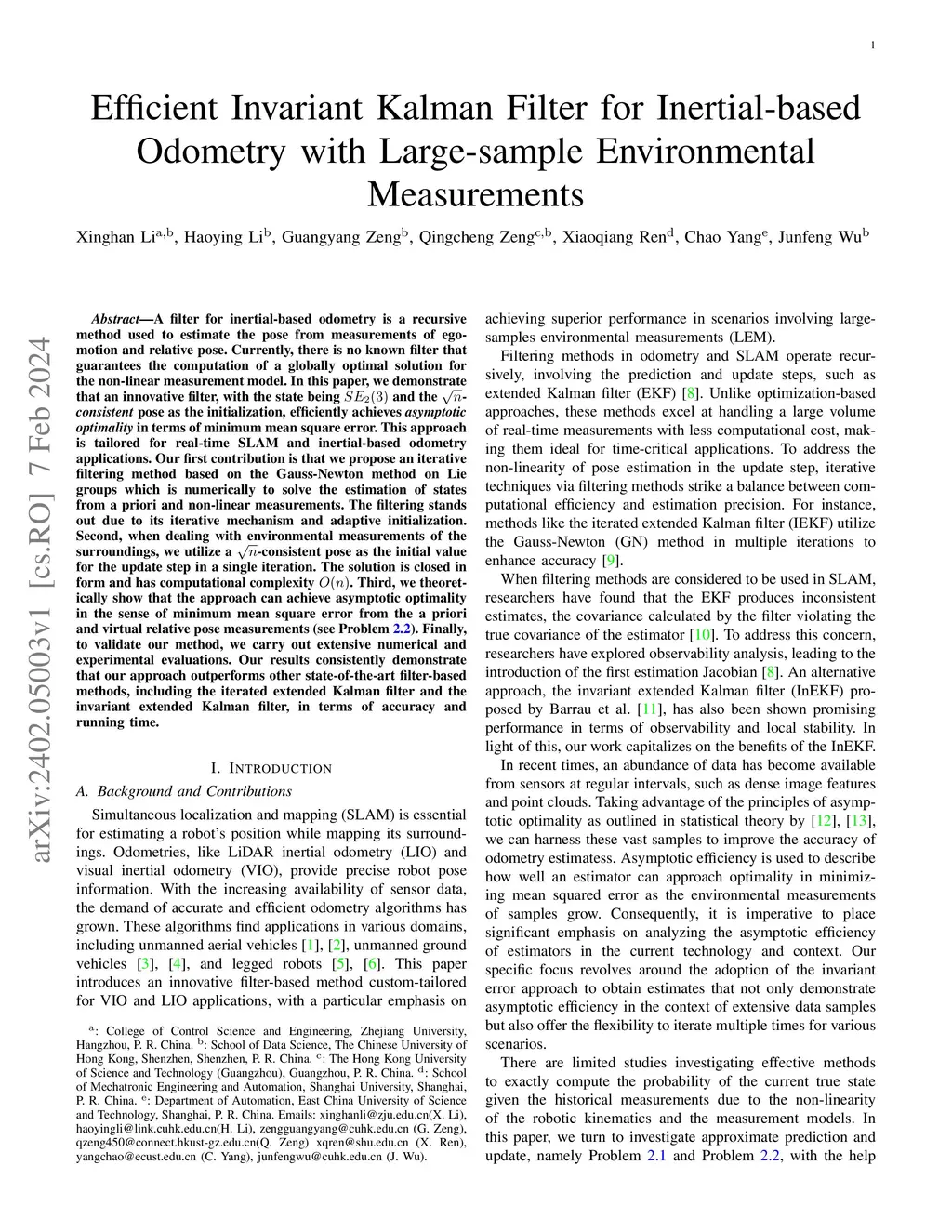 A filter for inertial-based odometry is a recursive method used to estimate the pose from measurements of ego-motion and relative pose. Currently, there is no known filter that guarantees the computation of a globally optimal solution for the non-linear measurement model. In this paper, we demonstrate that an innovative filter, with the state being and the -\textit{consistent} pose as the initialization, efficiently achieves \textit{asymptotic optimality} in terms of minimum mean square error. This approach is tailored for real-time SLAM and inertial-based odometry applications. Our first contribution is that we propose an iterative filtering method based on the Gauss-Newton method on Lie groups which is numerically to solve the estimation of states from a priori and non-linear measurements. The filtering stands out due to its iterative mechanism and adaptive initialization. Second, when dealing with environmental measurements of the surroundings, we utilize a -consistent pose as the initial value for the update step in a single iteration. The solution is closed in form and has computational complexity . Third, we theoretically show that the approach can achieve asymptotic optimality in the sense of minimum mean square error from the a priori and virtual relative pose measurements (see Problem~\ref{prob:new update problem}). Finally, to validate our method, we carry out extensive numerical and experimental evaluations. Our results consistently demonstrate that our approach outperforms other state-of-the-art filter-based methods, including the iterated extended Kalman filter and the invariant extended Kalman filter, in terms of accuracy and running time.