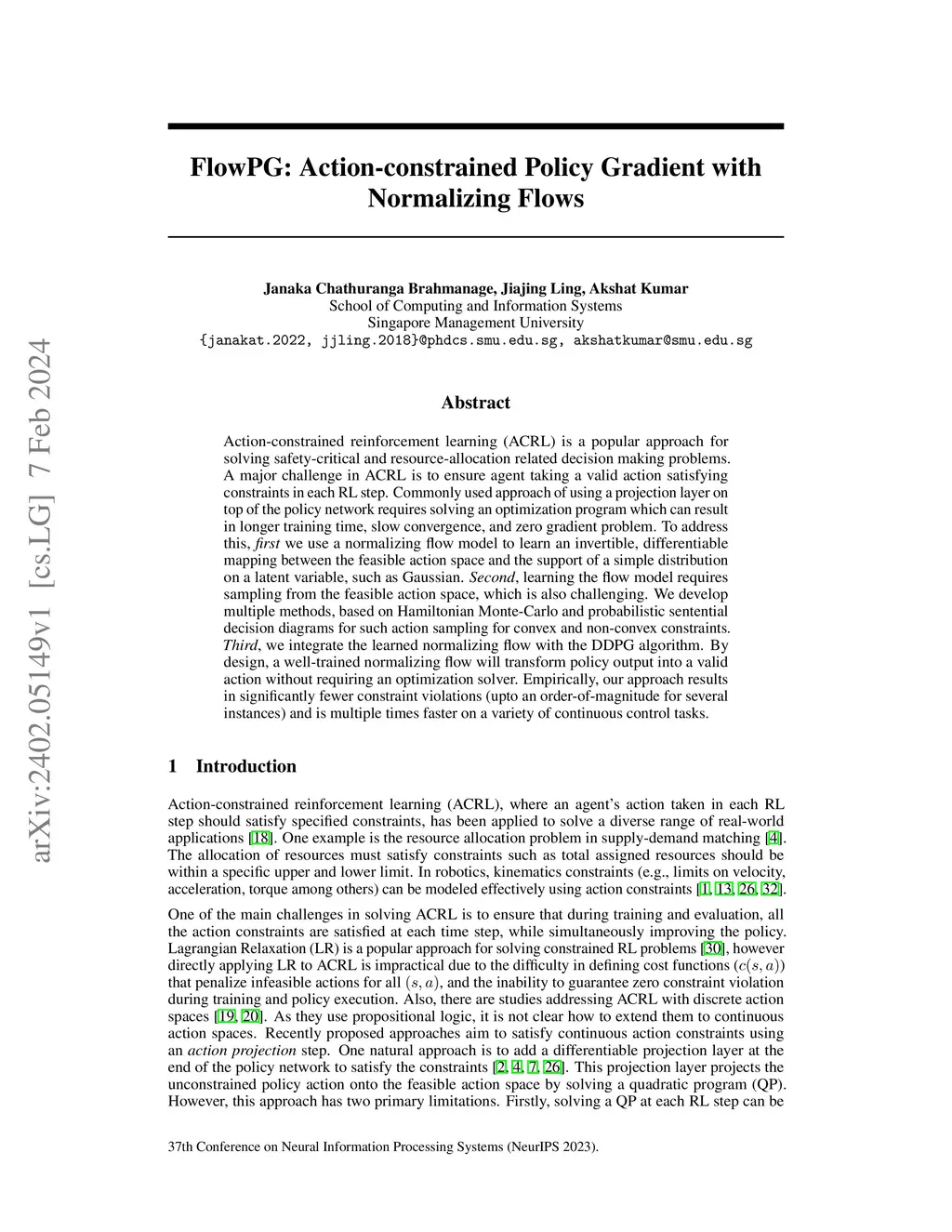 FlowPG: Action-constrained Policy Gradient with Normalizing Flows